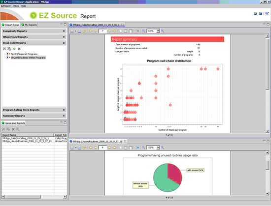 | On Z/Os for example, EZ Source Enterprise Server can provide you with information such as: ▫ Jobs that have not been submitted for a certain period of time ▫ Transactions that have not been used for a certain period of time ▫ Source code that was not touched for a long period of time (for each member we keep creation and changed dates) ▫ Files that have not been accessed ▫ VSAM files that have not been used ▫ Load Module -source code relations analysis And many more. |
